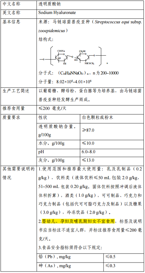 新食品原料透明質(zhì)酸鈉2020年第9號公告