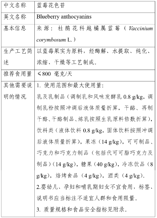 根據(jù)《中華人民共和國食品安全法》和《新食品原料安全性審查管理辦法》規(guī)定,國家衛(wèi)生健康委員會委托審評機構(gòu)依照法定程序,組織專家對藍莓花色苷的安全性評估材料審查并通過。新食品原料生產(chǎn)和使用應(yīng)當符合公告內(nèi)容以及食品安全相關(guān)法規(guī)要求。鑒于藍莓花色苷在嬰幼兒、孕婦和哺乳期婦女人群中的食用安全性資料不足,從風險預(yù)防原則考慮,上述人群不宜食用,標簽及說明書中應(yīng)當標注不適宜人群。該原料的食品安全指標按照公告規(guī)定執(zhí)行。